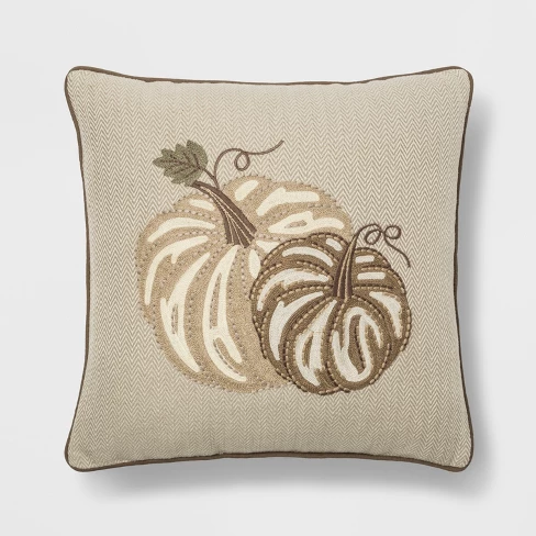 Embroidered Pumpkin Square Throw Pillow Neutral - Threshold™